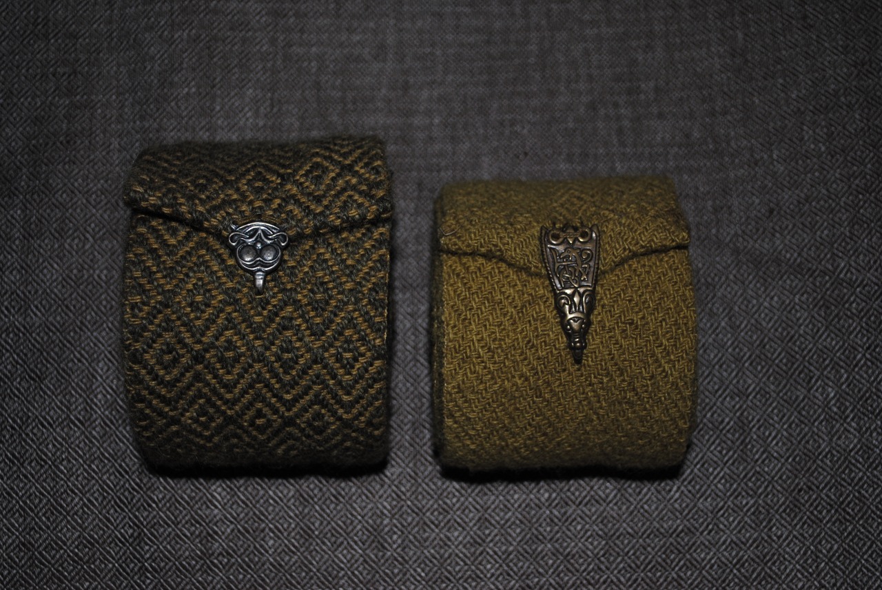 Attache en argent (Danemark, Xe) - Une paire de bandes molletières verte, tissage diamant, teintées aux plantes.