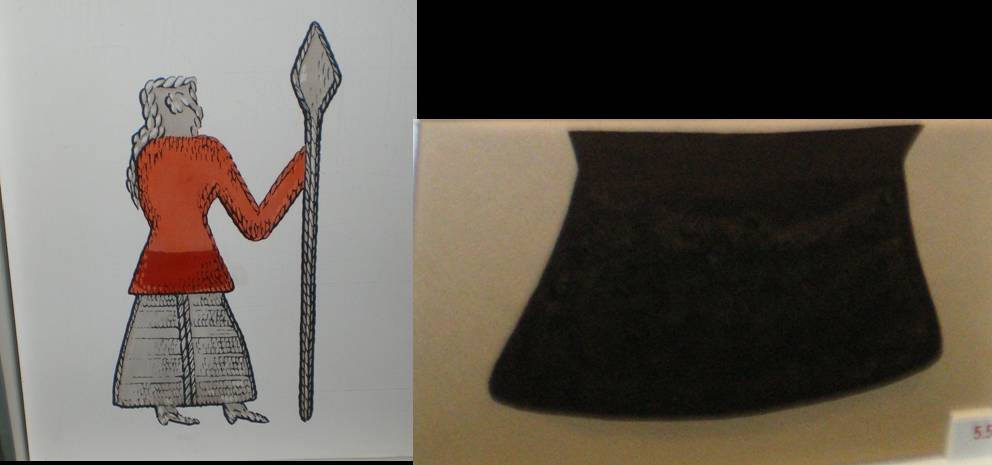 ChapeauChapeau en feutre, bordé de fourrure de renard. On a retrouvé des chapeaux ronds à Birka, mais pas exactement comme celui-là (en laine tissée et non en feutre, et sans fourrure au bord). Quelqu’un aurait-il une source ?
