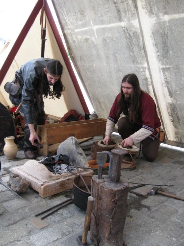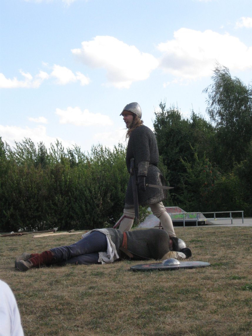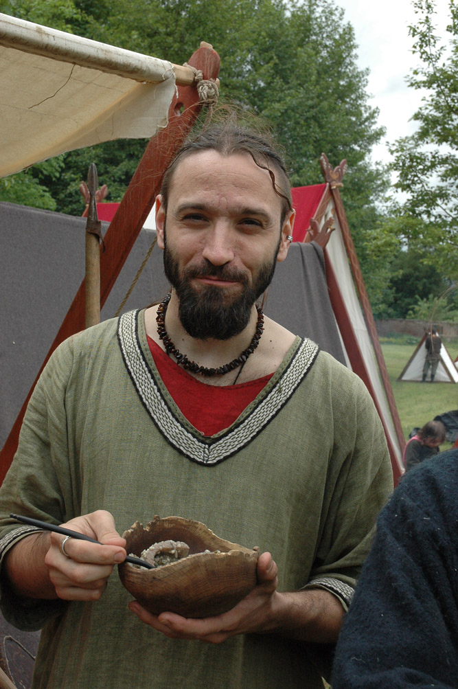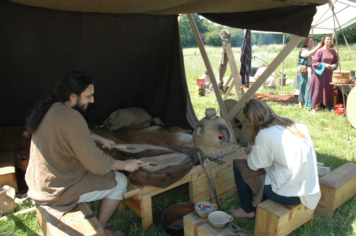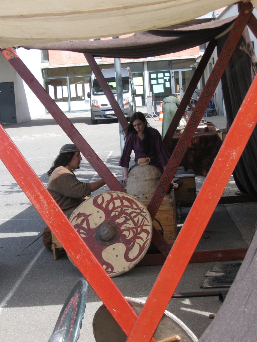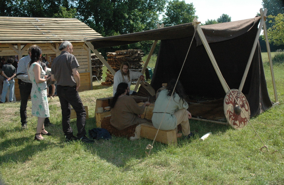Camp privé Branche Rouge/Druzhina Hansa/Leita at BardagiDu 29/10/2009 au 01/11/2009 pour fêter les 10 ans de la Branche Rouge et la Samhain, au musée des temps barbares de Marle. Animation de l'île Saint Catherine - 18 et 19 septembre 2009La Branche Rouge anime l'île Saint Catherine à Tourville. Démonstrations d'artisanat et initiation du public. Spectacle de combat, contes, exposition sur l'hygiène et la vie quotidienne. Animation pédagogique dans un centre aéré à Guyancourt le 28 août 2009La Branche Rouge proposait le 28 août une animation d'une demi-journée sur le thème des vikings dans un centre aéré. Sept membres de l'association ont évoqué pour 80 enfants la période viking : au programme montage d'un mini campement dans le centre, contes et mythologie des anciens scandinaves démonstrations d'artisanat et initiation au tissage, au tannage et à des jeux viking, démonstration de combat. Atelier perle de verre à la Cidatelle de Namur, 23 et 24 août 2009L'atelier perle de verre de la Branche Rouge participe à l'animation de la Tour au Four de la Citadelle de Namur, sur le thème "les métiers du feu au moyen-âge". Expérimentation de construction d'une maison à 6 trous de poteaux en Bourgogne du 3 au 12 Juillet.La Branche Rouge expérimente une construction de maison à 6 trous de poteaux et toit à double pente : un modèle de maison que l'on pouvait retrouver en l'an mil en Puisaye. Les matériaux : 6 troncs de sapins coupés sur place, des roseaux récoltés dans un étang proche pour le chaume, de la paille, de la terre et de l'argile de Saint Amand. L'ensemble des matériaux provient des environs du lieu de construction. Les outils utilisés sont dans la mesures du possibles des outils d'époque reconstitués ou des outils à mains proches des outils utilisés en l'an mil: Pèles, pioches, brouette pour le terrassement; haches, doloires, herminettes pour fabriquer des poutres à partir des troncs; Scies à main, maillets ciseaux pour travailler le bois; Serpettes pour couper les roseaux du chaume; couteau ou hachette pour fabriquer des chevilles... quelques outils inventés plus tardivement (scies à deux personnes), le seul outils électrique utilisé à été une perceus(utilisée pour percer les trous pour cheviller). Nous étions entre 23 et 26 personnes durant 10 jours pour construire la maison. Des associations amies : Druzhina Hansa, les Forges de Midgard, Leita At Bardagi, sont venues nous aider sur l'ensemble du projet ou pour quelques jours. Débarquement Dreknorr à Paris, les 13 et 14 juin 2009La Branche Rouge accompagne le Dreknorr dans sa remontée de la seine qui se terminée à Paris au Parc Andrée Citroën. Débarquement Dreknorr à Vernon, les 6 et 7 juin 2009La Branche Rouge accompagne le Dreknoor dans sa remontée de la seine. Elle installe son campement sur les bords du fleuve à Vernon (Seine-Maritime) Atelier Perles de verre au musée de Velzeke, 30-31 mai 2009L'atelier de perles de verre de la Branche Rouge au musée de Velzeke en Belgique pour la cloture de leur exposition "Fragile" sur le verre à l'époque Gallo-Romaine. Pour ce week-end sur le thème du verre, le musée de Velzeke avait invité des soufleurs de verre anglais et français à travailler dans une reconstitution de four à verre antique construit par le musée pour l'occasion. Journées viking de Marles, 16 et 17 mai 2009Participation de la Branche Rouge aux journées viking de l'archéosite picard de Marle Grandeur Nature Historique "Les Larmes de Freydis", 3 et 4 et 5 avril 2009Organisé par La Branche Rouge et Leita at Bardagi, le grandeur Nature s'est déroulé sur un week-end à Lainsecq en Bourgogne. Il rassemblait 70 personnes de plusieurs compagnies de reconstitution (Branche Rouge, Leita, Druzhina Hansa, Les Renards, Frankheim Vikingar, Tantreval, ...) et des rôliste ayant fait l'effort de se faire un costume de qualité. Inspiré de la saga des Groenlandais et de la saga d'Eric le Rouge, le scénario se déroulait durant la dernière expédition au Vinland, celle conduite par Freydis Erikdottyr. |