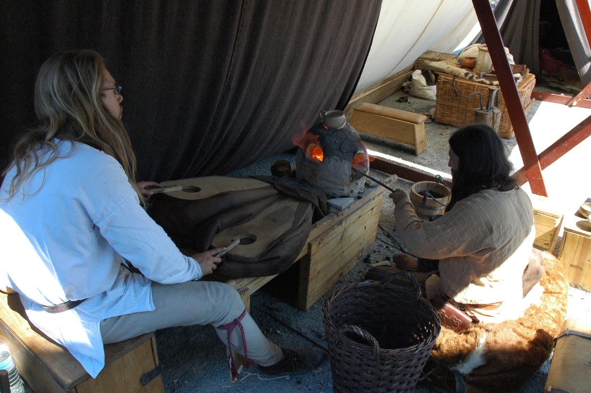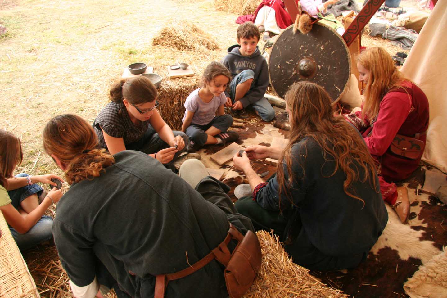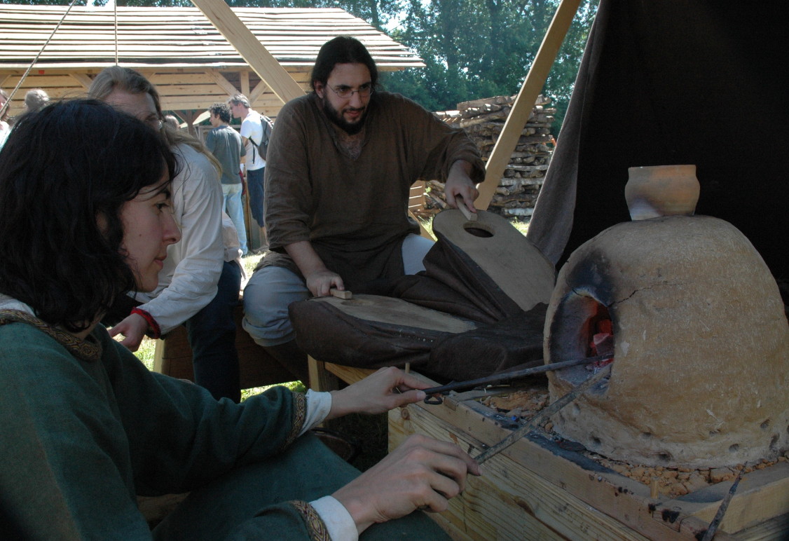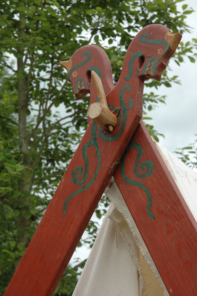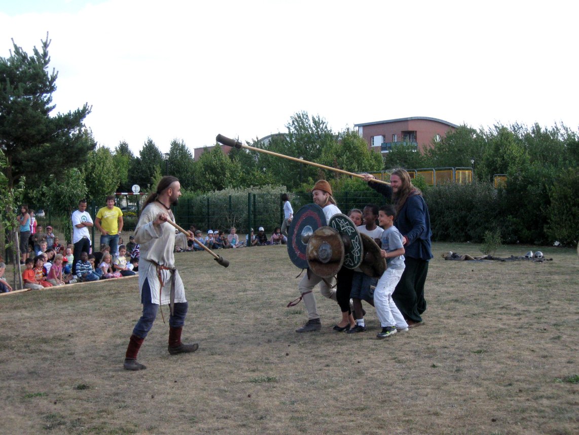 Camp privé Branche Rouge/Druzhina Hansa/Leita at BardagiDu 29/10/2009 au 01/11/2009 pour fêter les 10 ans de la Branche Rouge et la Samhain, au musée des temps barbares de Marle. Animation de l'île Saint Catherine - 18 et 19 septembre 2009La Branche Rouge anime l'île Saint Catherine à Tourville. Démonstrations d'artisanat et initiation du public. Spectacle de combat, contes, exposition sur l'hygiène et la vie quotidienne. Animation pédagogique dans un centre aéré à Guyancourt le 28 août 2009La Branche Rouge proposait le 28 août une animation d'une demi-journée sur le thème des vikings dans un centre aéré. Sept membres de l'association ont évoqué pour 80 enfants la période viking : au programme montage d'un mini campement dans le centre, contes et mythologie des anciens scandinaves démonstrations d'artisanat et initiation au tissage, au tannage et à des jeux viking, démonstration de combat. Atelier perle de verre à la Cidatelle de Namur, 23 et 24 août 2009L'atelier perle de verre de la Branche Rouge participe à l'animation de la Tour au Four de la Citadelle de Namur, sur le thème "les métiers du feu au moyen-âge". Expérimentation de construction d'une maison à 6 trous de poteaux en Bourgogne du 3 au 12 Juillet.La Branche Rouge expérimente une construction de maison à 6 trous de poteaux et toit à double pente : un modèle de maison que l'on pouvait retrouver en l'an mil en Puisaye. Les matériaux : 6 troncs de sapins coupés sur place, des roseaux récoltés dans un étang proche pour le chaume, de la paille, de la terre et de l'argile de Saint Amand. L'ensemble des matériaux provient des environs du lieu de construction. Les outils utilisés sont dans la mesures du possibles des outils d'époque reconstitués ou des outils à mains proches des outils utilisés en l'an mil: Pèles, pioches, brouette pour le terrassement; haches, doloires, herminettes pour fabriquer des poutres à partir des troncs; Scies à main, maillets ciseaux pour travailler le bois; Serpettes pour couper les roseaux du chaume; couteau ou hachette pour fabriquer des chevilles... quelques outils inventés plus tardivement (scies à deux personnes), le seul outils électrique utilisé à été une perceus(utilisée pour percer les trous pour cheviller). Nous étions entre 23 et 26 personnes durant 10 jours pour construire la maison. Des associations amies : Druzhina Hansa, les Forges de Midgard, Leita At Bardagi, sont venues nous aider sur l'ensemble du projet ou pour quelques jours. Débarquement Dreknorr à Paris, les 13 et 14 juin 2009La Branche Rouge accompagne le Dreknorr dans sa remontée de la seine qui se terminée à Paris au Parc Andrée Citroën. Débarquement Dreknorr à Vernon, les 6 et 7 juin 2009La Branche Rouge accompagne le Dreknoor dans sa remontée de la seine. Elle installe son campement sur les bords du fleuve à Vernon (Seine-Maritime) Atelier Perles de verre au musée de Velzeke, 30-31 mai 2009L'atelier de perles de verre de la Branche Rouge au musée de Velzeke en Belgique pour la cloture de leur exposition "Fragile" sur le verre à l'époque Gallo-Romaine. Pour ce week-end sur le thème du verre, le musée de Velzeke avait invité des soufleurs de verre anglais et français à travailler dans une reconstitution de four à verre antique construit par le musée pour l'occasion. Journées viking de Marles, 16 et 17 mai 2009Participation de la Branche Rouge aux journées viking de l'archéosite picard de Marle Grandeur Nature Historique "Les Larmes de Freydis", 3 et 4 et 5 avril 2009Organisé par La Branche Rouge et Leita at Bardagi, le grandeur Nature s'est déroulé sur un week-end à Lainsecq en Bourgogne. Il rassemblait 70 personnes de plusieurs compagnies de reconstitution (Branche Rouge, Leita, Druzhina Hansa, Les Renards, Frankheim Vikingar, Tantreval, ...) et des rôliste ayant fait l'effort de se faire un costume de qualité. Inspiré de la saga des Groenlandais et de la saga d'Eric le Rouge, le scénario se déroulait durant la dernière expédition au Vinland, celle conduite par Freydis Erikdottyr. |