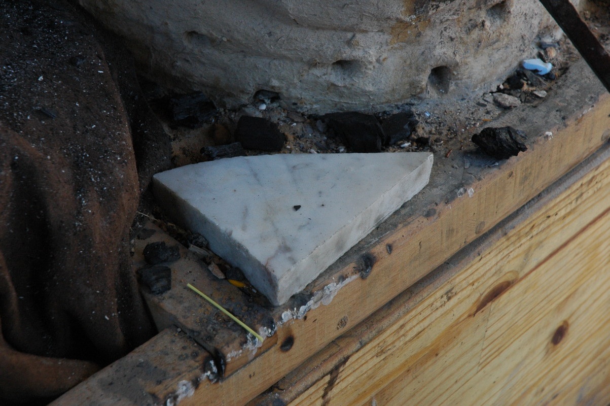 Fonte d'un pion de jeu en verre dans un moule et os de sêche