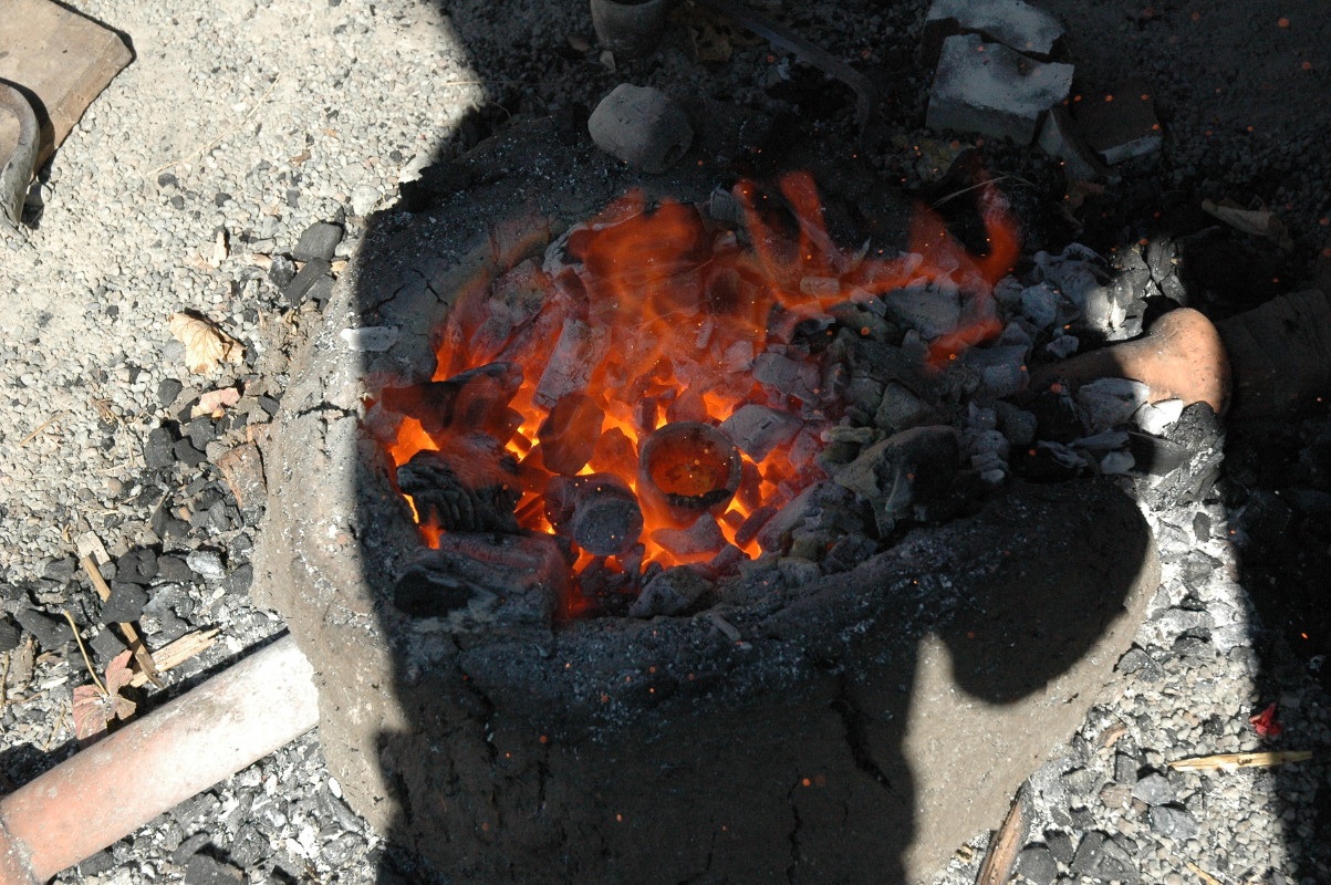 Consommation pour deux jours de travail et 100 perles: 50 litres de charbon