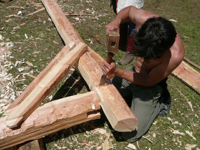 Expérimentation de construction d'une maison à 6 trous de poteaux en Bourgogne du 3 au 12 Juillet.