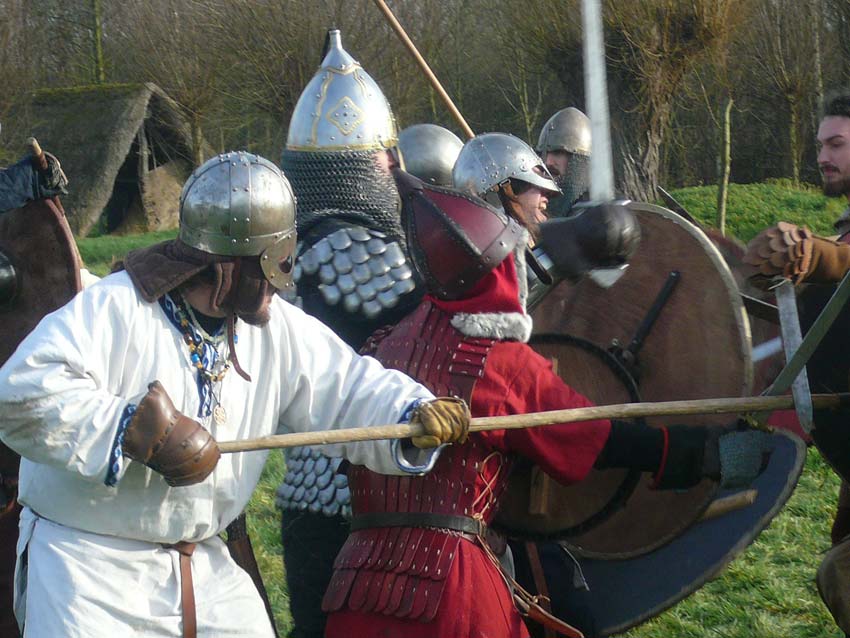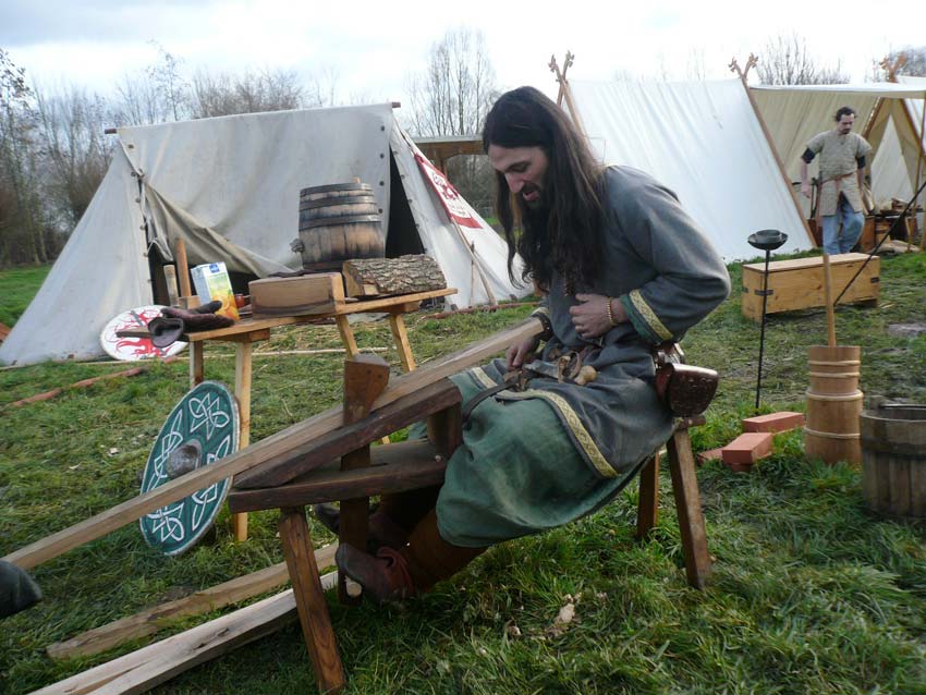 La Branche Rouge anime l'archéosite de la Haie Joulain (Saint Sylvain d'Anjou). Tannage, Brassage, Perlerie, Forge, Combat...