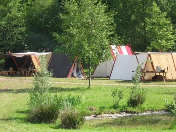 Elle dispose de deux ensembles de tentes échoppes sculptées, d'une grande tentée ornementée permettant de présenter un couchage historique : lit sculpté, d'une grande tente échoppe, et de 3 autres tentes en lin destinées à l'hébergement des membres de l'association et à la présentation du matériel.